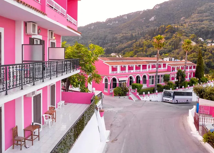 Das The Pink Palace Hostel Agios Gordios bietet Unterkunft in Agios Gordios und verfügt über ein Restaurant.